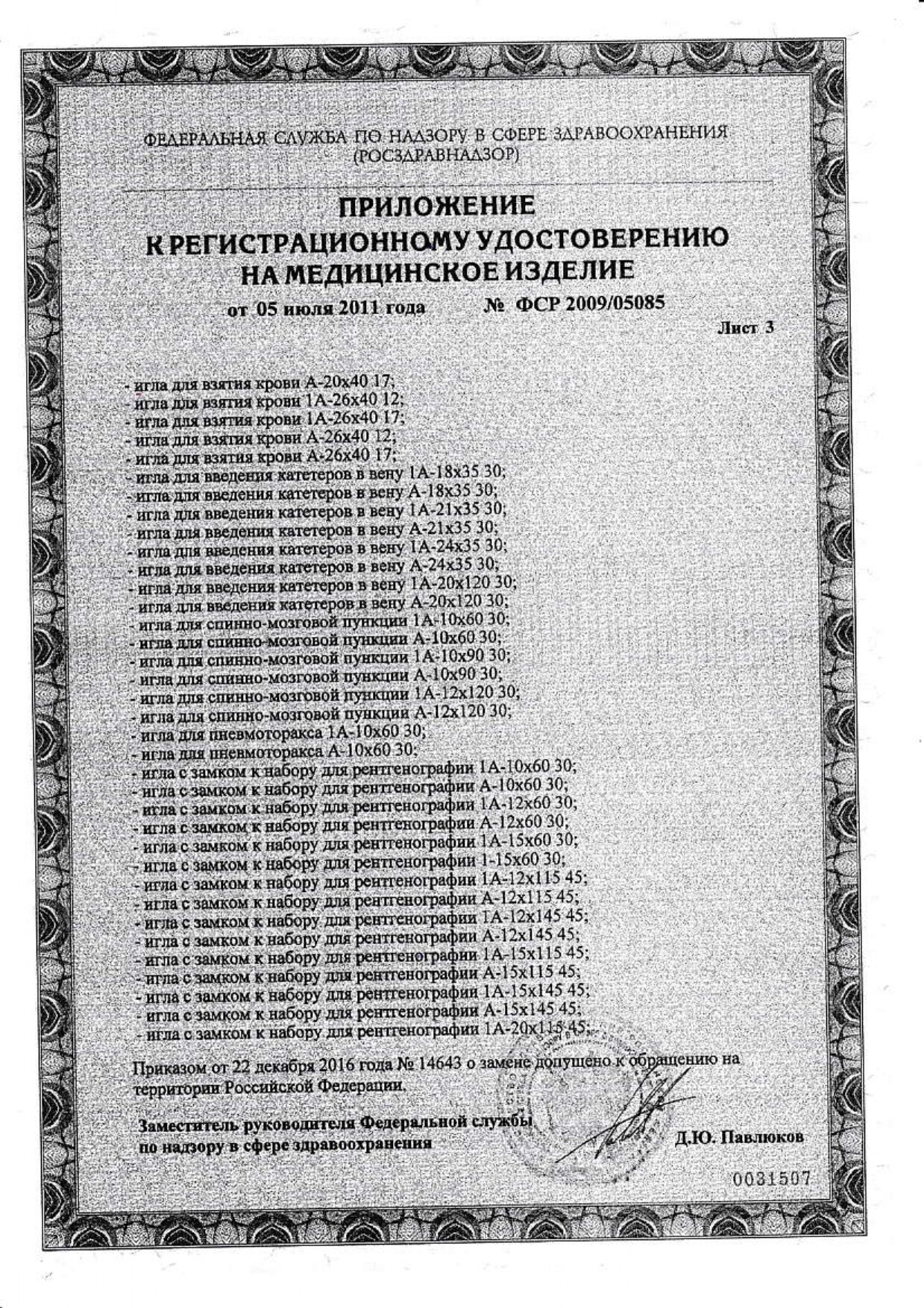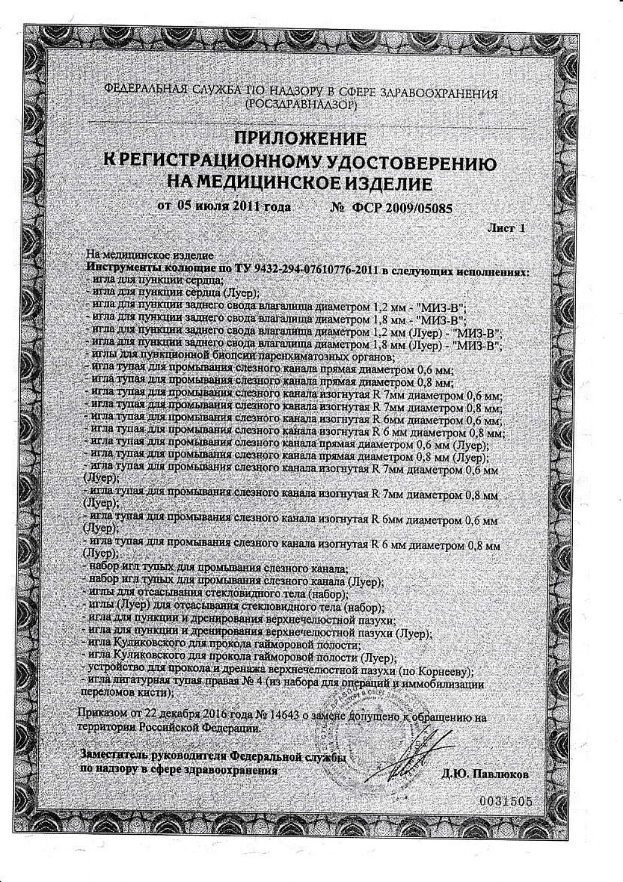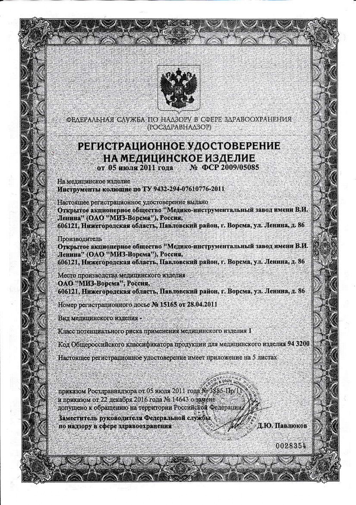 Регистрационное удостоверение № ФСР 2010/09225 от 25.10.2016г.