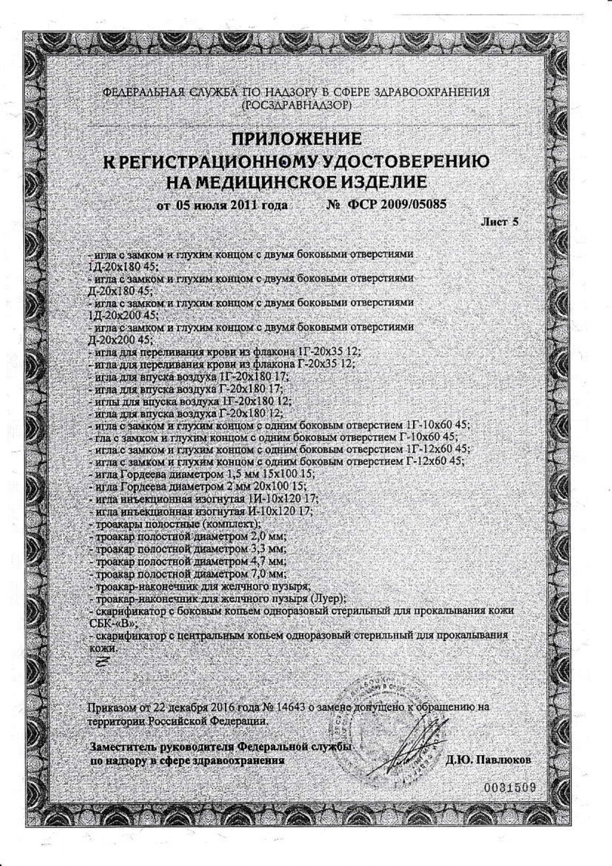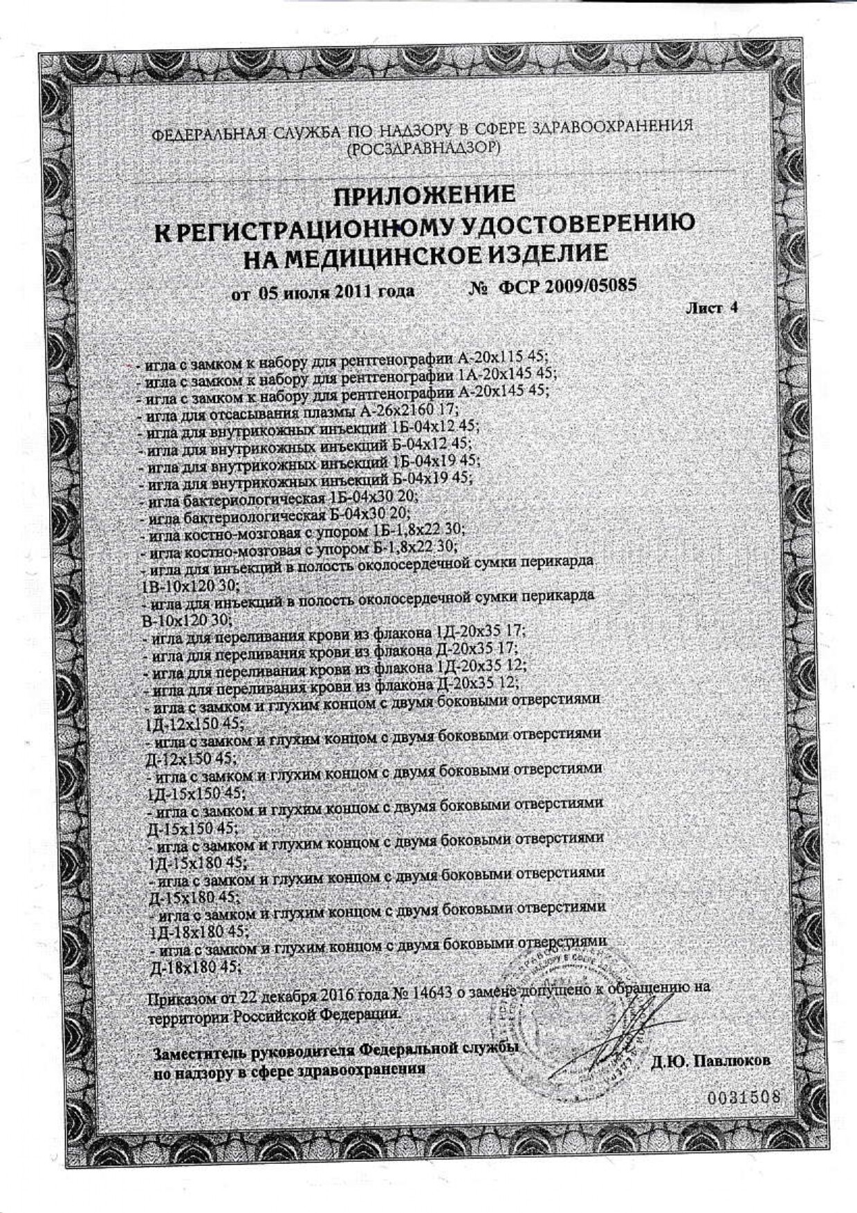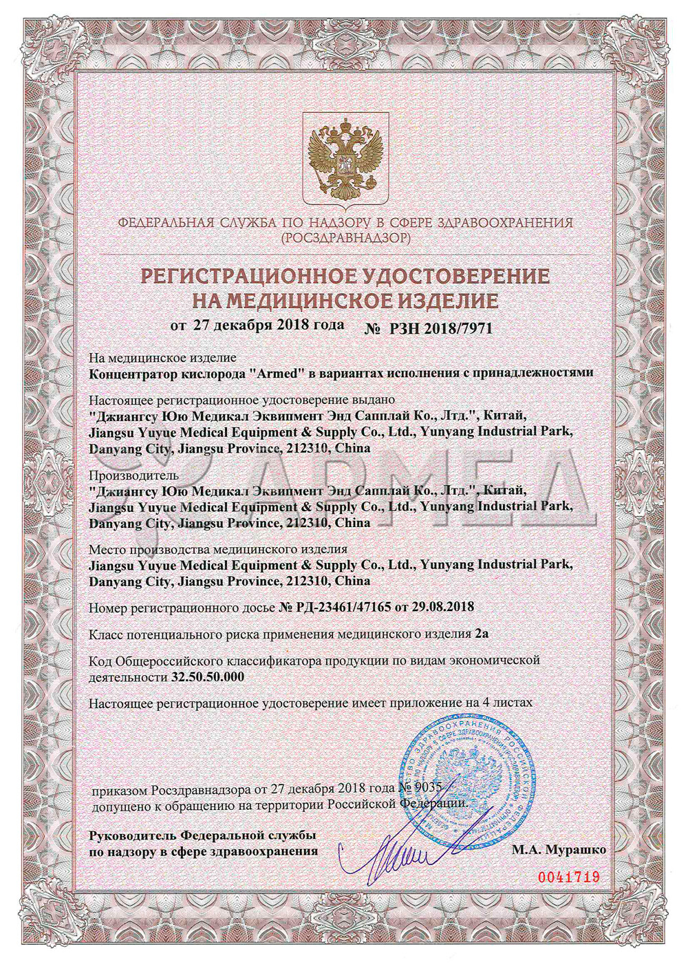 Регистрационное удостоверение № ФСР 2010/09225 от 25.10.2016г.