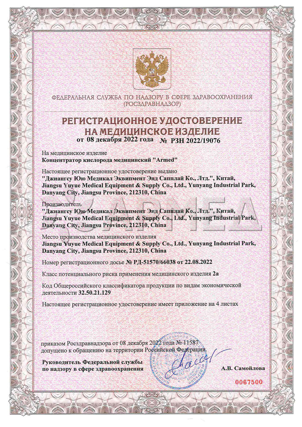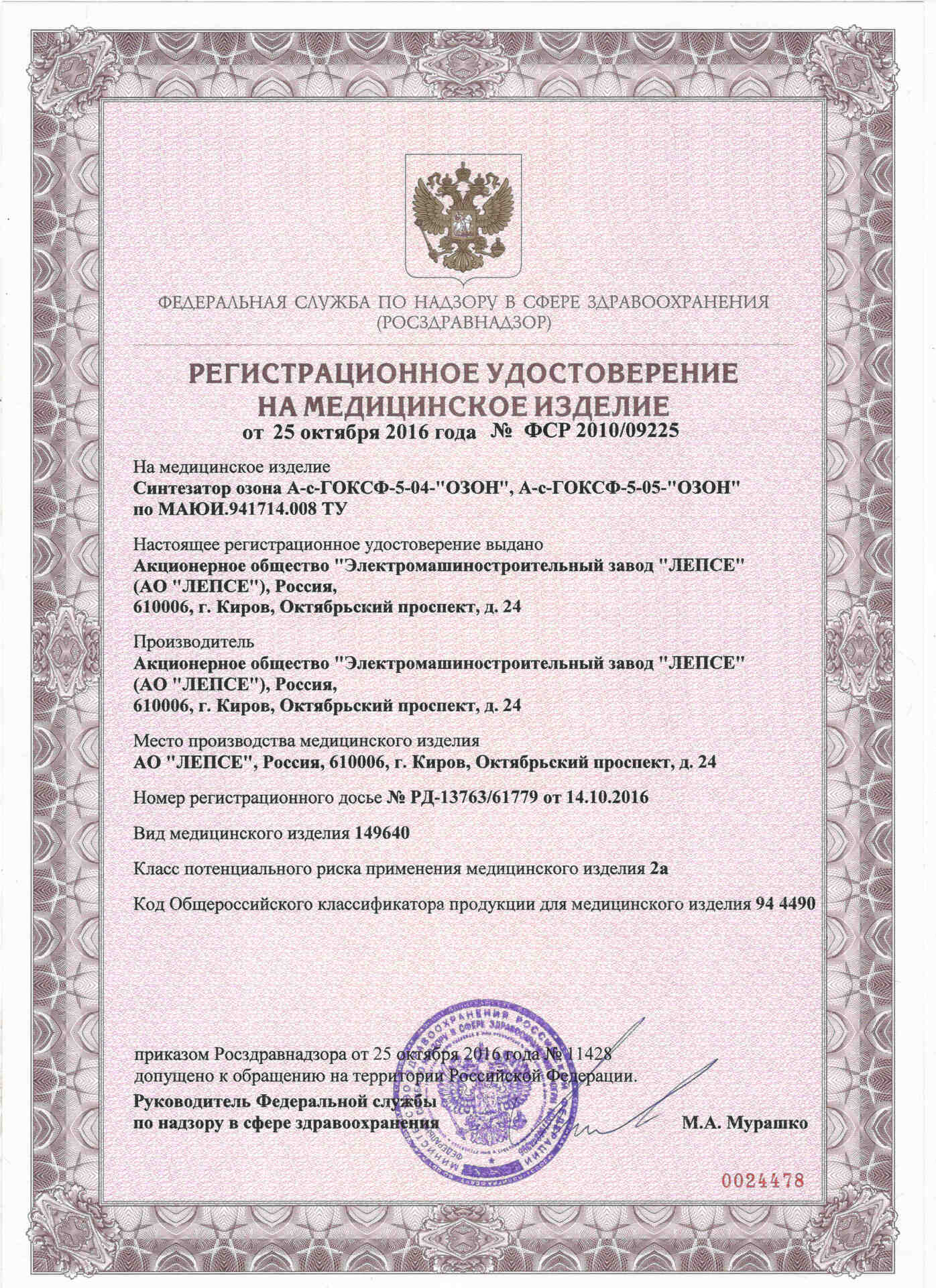 Синтезаторы озона рекомендованы к использованию Ассоциацией Российских Озонотерапевтов и включены в реестр изделий медицинского назначения и медицинской техники.