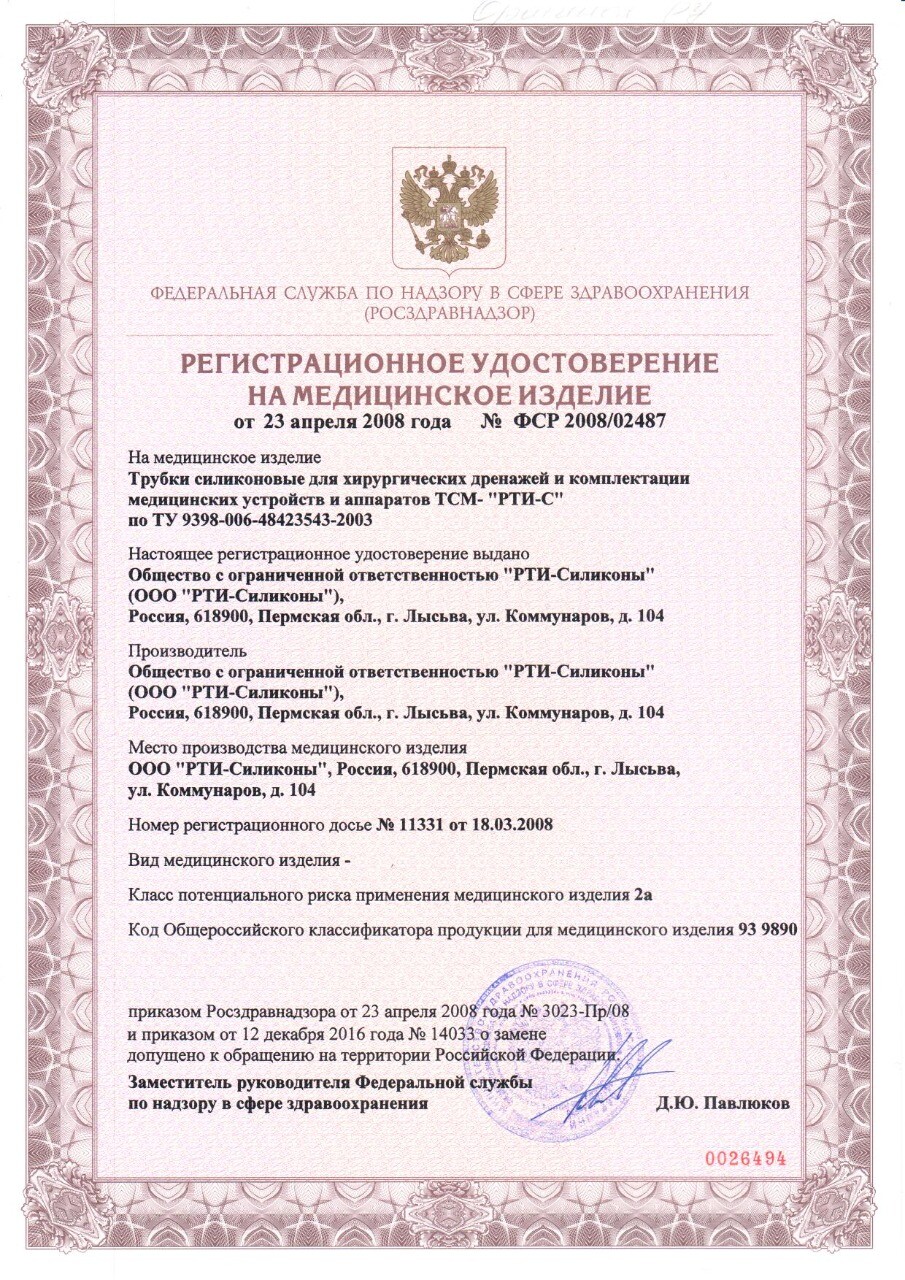 Изделие внесено в Государственный реестр изделий медицинского назначения и медицинской техники.
